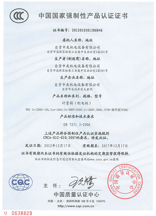 中國國家強制性產(chǎn)品認證證書